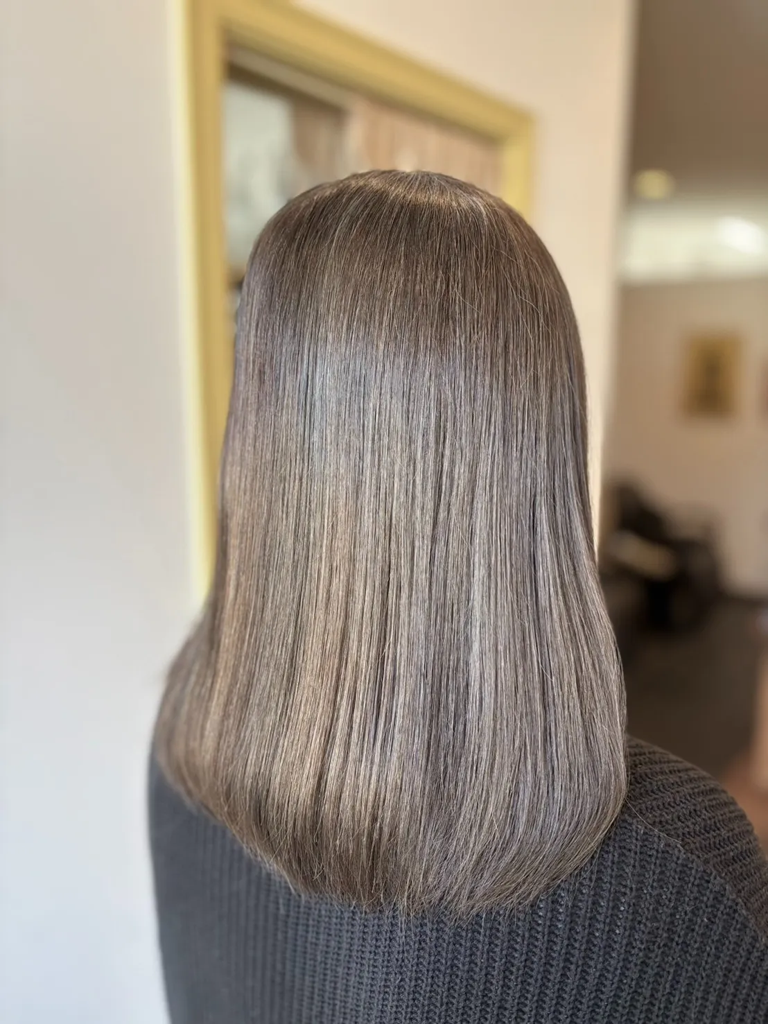 でも、染めないと気になるし…そんな方におすすめなのが魔法の白髪ぼかしカラー。寒色系カラーで白髪を自然になじませるから、伸びても境目が目立ちにくいんです。ブリーチも使わないのでダメージも少なく、透明感のあるやわらかい色に。白髪を無理に隠さず、キレイに見せる新しい選択です。